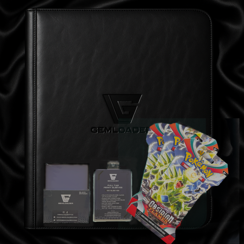 Her får du alt, du behøver for at bygge en stærk samling og holde dine kort sikre – med premium tilbehør fra GemLoader, kombineret med sealed booster packs fra populære Scarlet & Violet-udvidelsen Obsidian Flame.